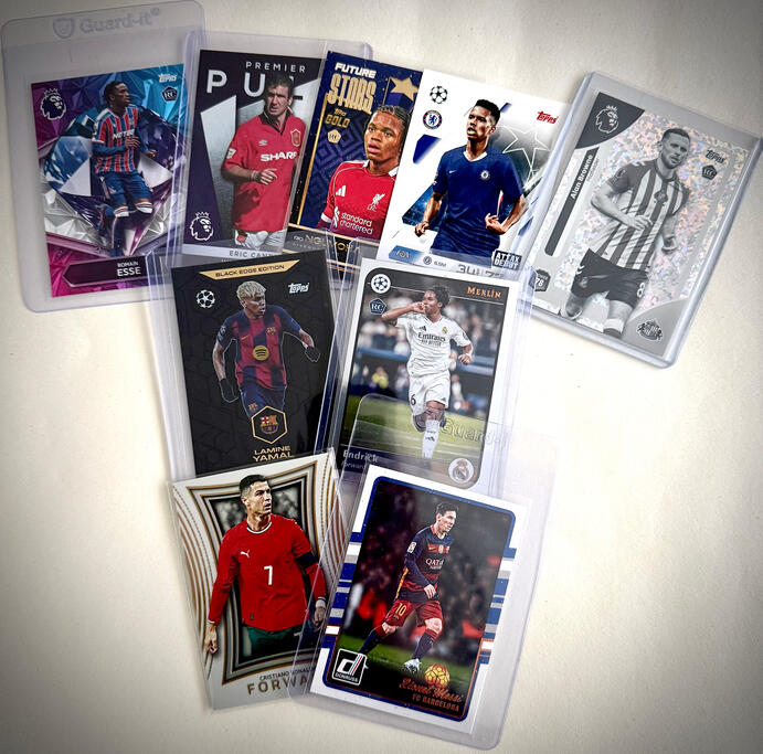Victory Vault mystery packs contain a carefully curated selection of genuine football trading cards from a range of licensed releases.Each pack is sealed and assembled to deliver a balanced mix of modern and classic cards, with the chance to uncover limited-edition, numbered, or special insert cards. No two packs are the same — every opening offers a unique collecting experience designed for true football card fans.